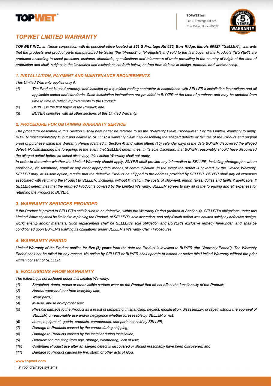 Topwet seeks dedicated distributors, resellers, and installation partners across the USA. Letâs grow together by bringing top-tier drainage solutions to every roof.