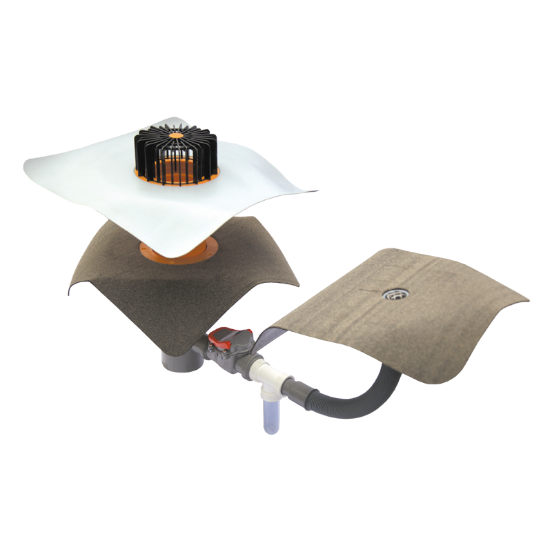 Thanks to its transparent inspection bulb, the system allows for a visual inspection to determine if water is present on the waterproofing layer.