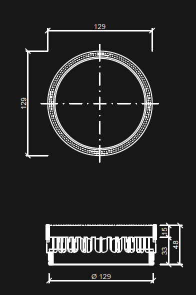 Drainage ring for extension of leaf guard TWOK or terrace attachment TW TER. The thick-walled polyamide PA6 UV Stabil design. The height above the level of the waterproof system is 33 mm. The hole size of 15×7 mm.
